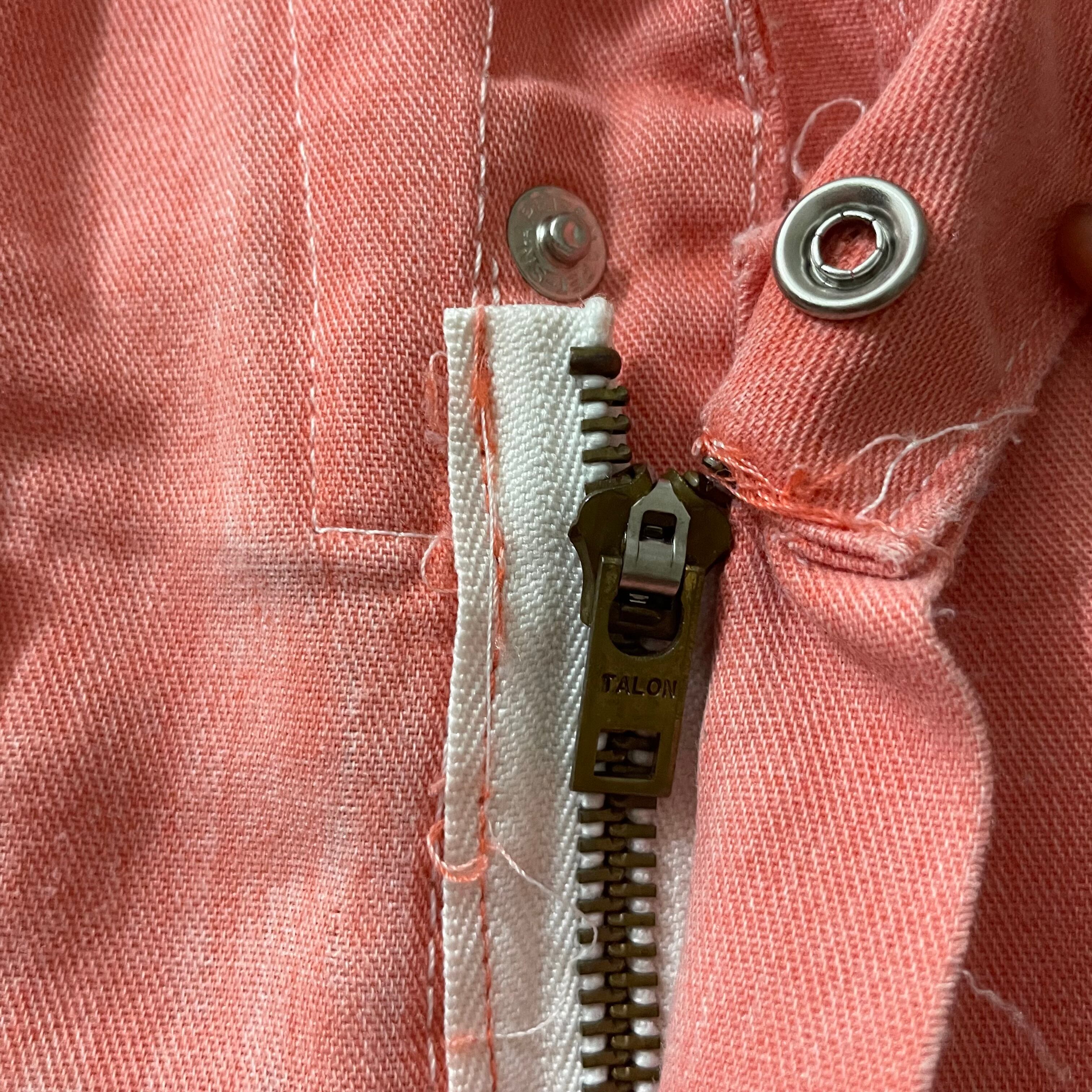 セミオートマチックのTALONジップが使用されたワーク系のつなぎ。シャンブレーで褪せた感じのピンクが珍しくかつ可愛さがあり、ワーク系ならではの男臭さがないので男女問わず着れると思います。