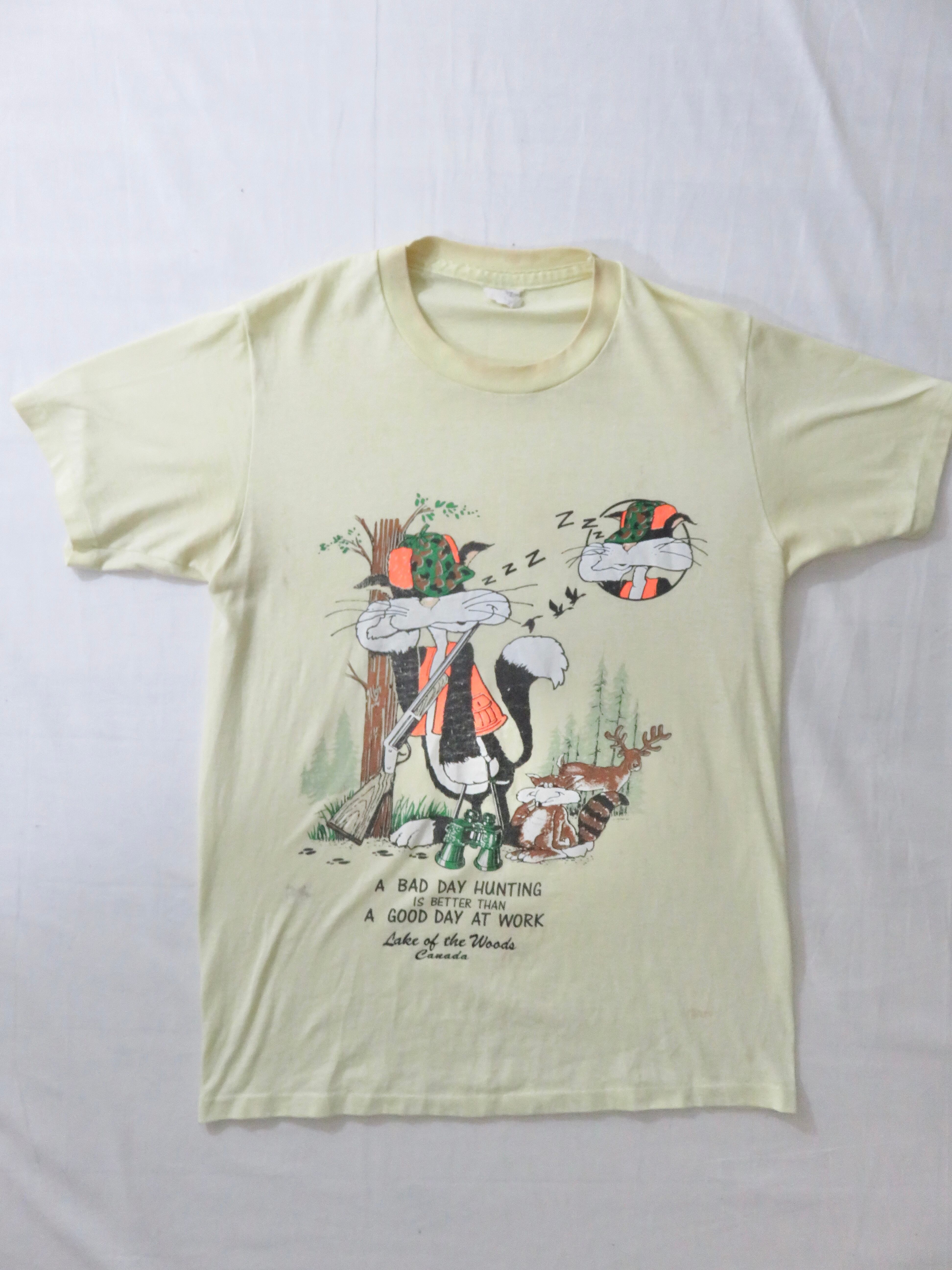 ハンティングをする猫というかなりパンチのあるプリント。英文を訳してみたら、「悪い日の狩りは良い仕事の日よりも良い」という意味らしく、今の自分にも刺さる言葉でした。笑